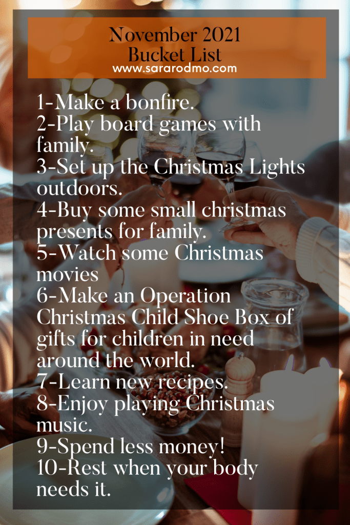 Without further adieu, here’s my November 2021 Bucket List:
