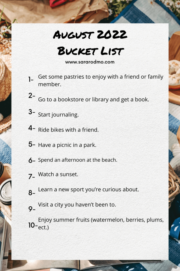 I hope you who are out there somewhere in the world, are enjoying this summer of 2022 to the fullest and I hope that you can find some of these ideas fun or interesting. Now these are of course, in my opinion not your typical ideas for a bucket list, in that they aren’t that adventurous. I am positive you may be able to come up with other ideas as well. So enjoy! These are here to inspire you to continue your own list.