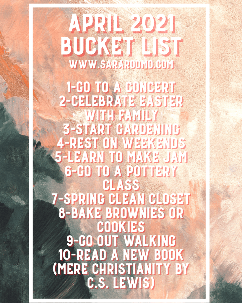 Hello friends, welcome to this month’s April bucket list of ideas. I have already been able to do most of these activities this month. It makes me really happy to be back again writing on the blog.