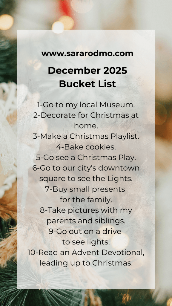 Today I bring you my December 2025 bucket list, I have already decorated the house since November, I think that some years I feel like decorating sooner and at other times not so much, so it changes. Grateful to God for this 2025 year, God has been good even in the midst of the difficulties and trials.
